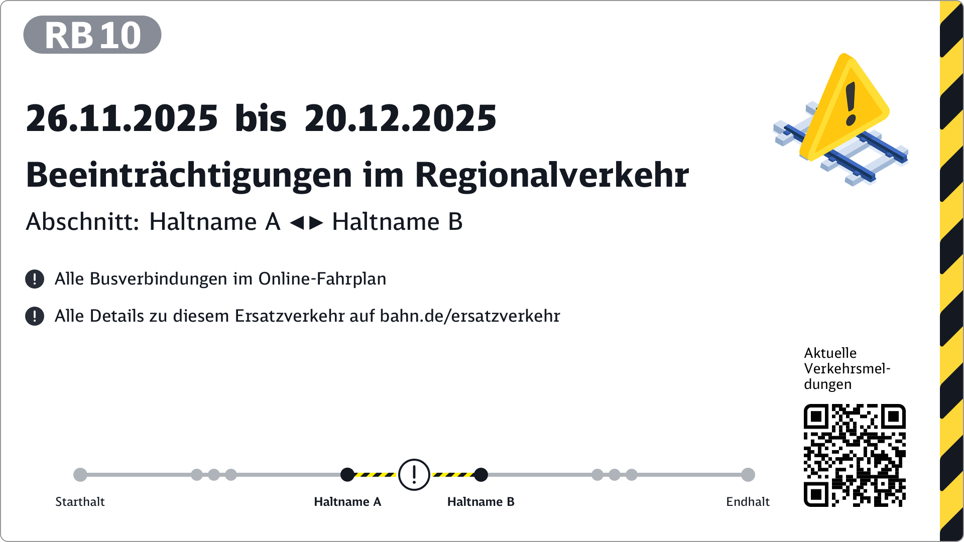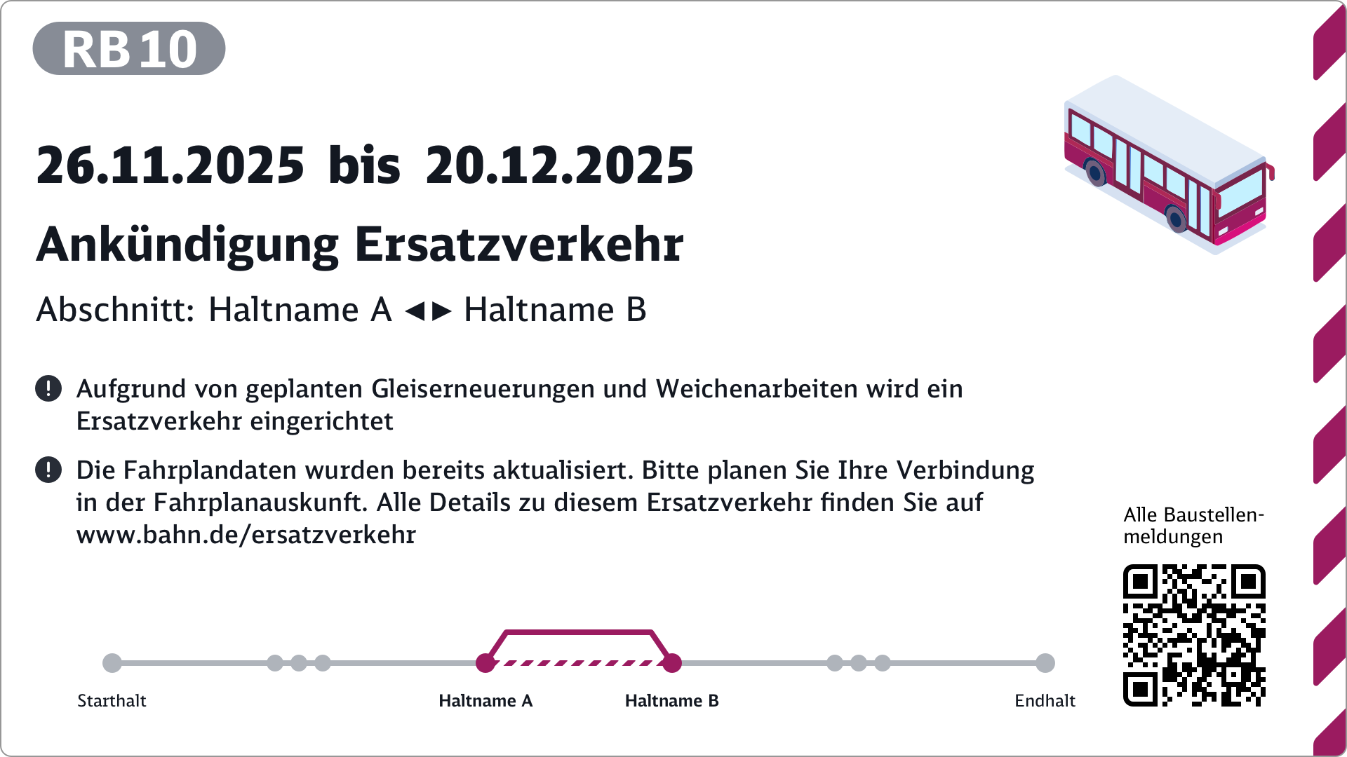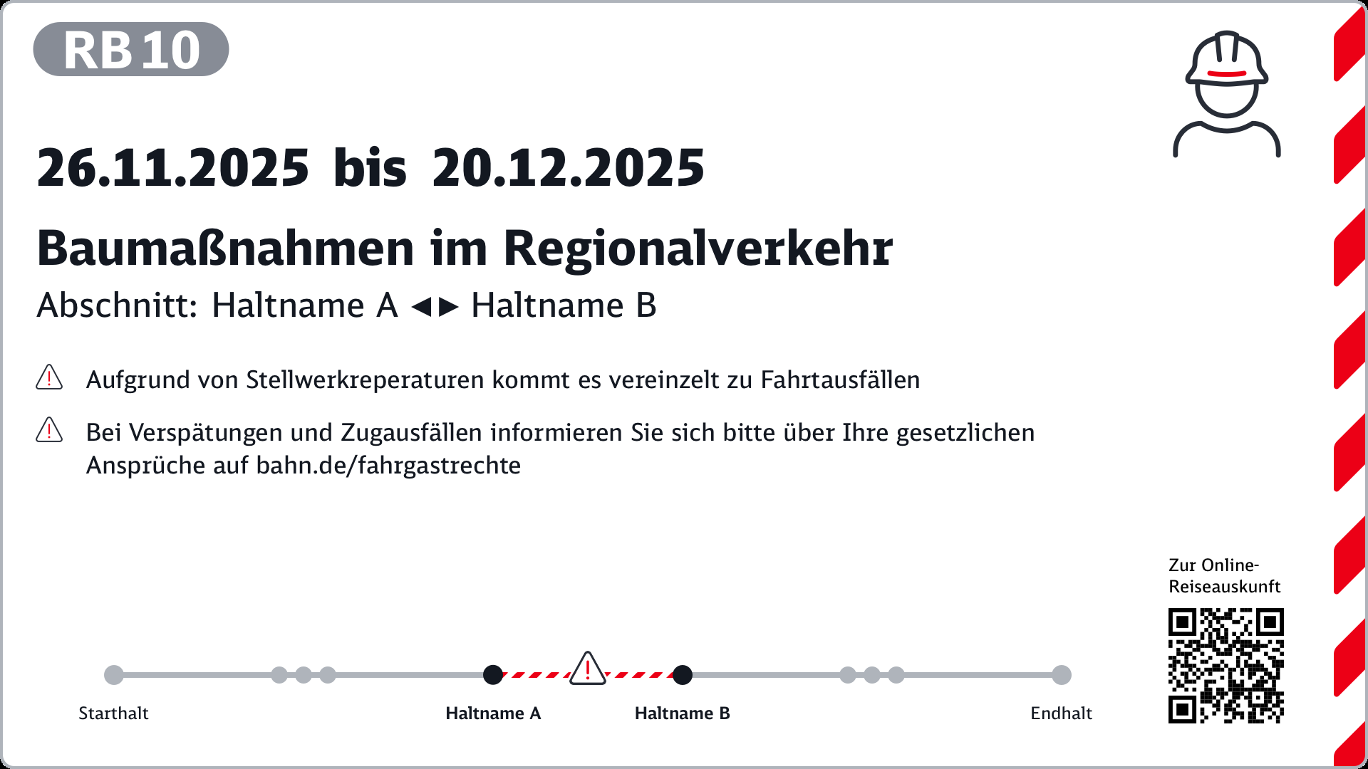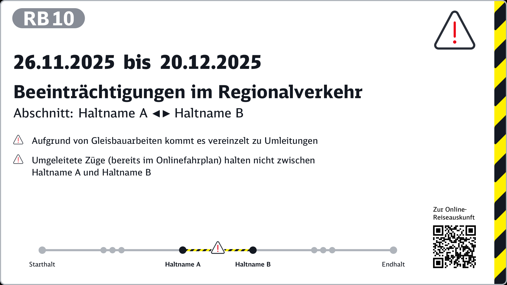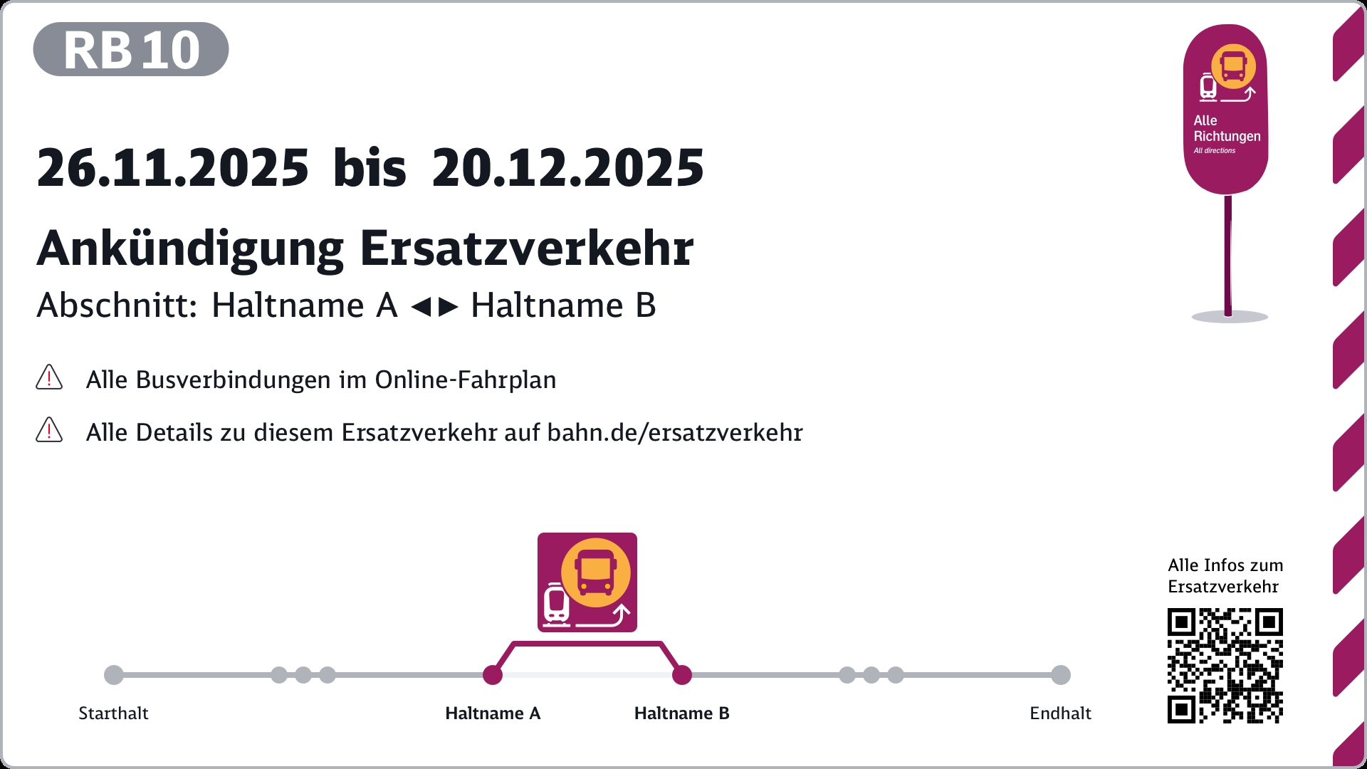 - Optionaler QR-Code (z. B. mit Lageplan der Ersatzhaltestelle)