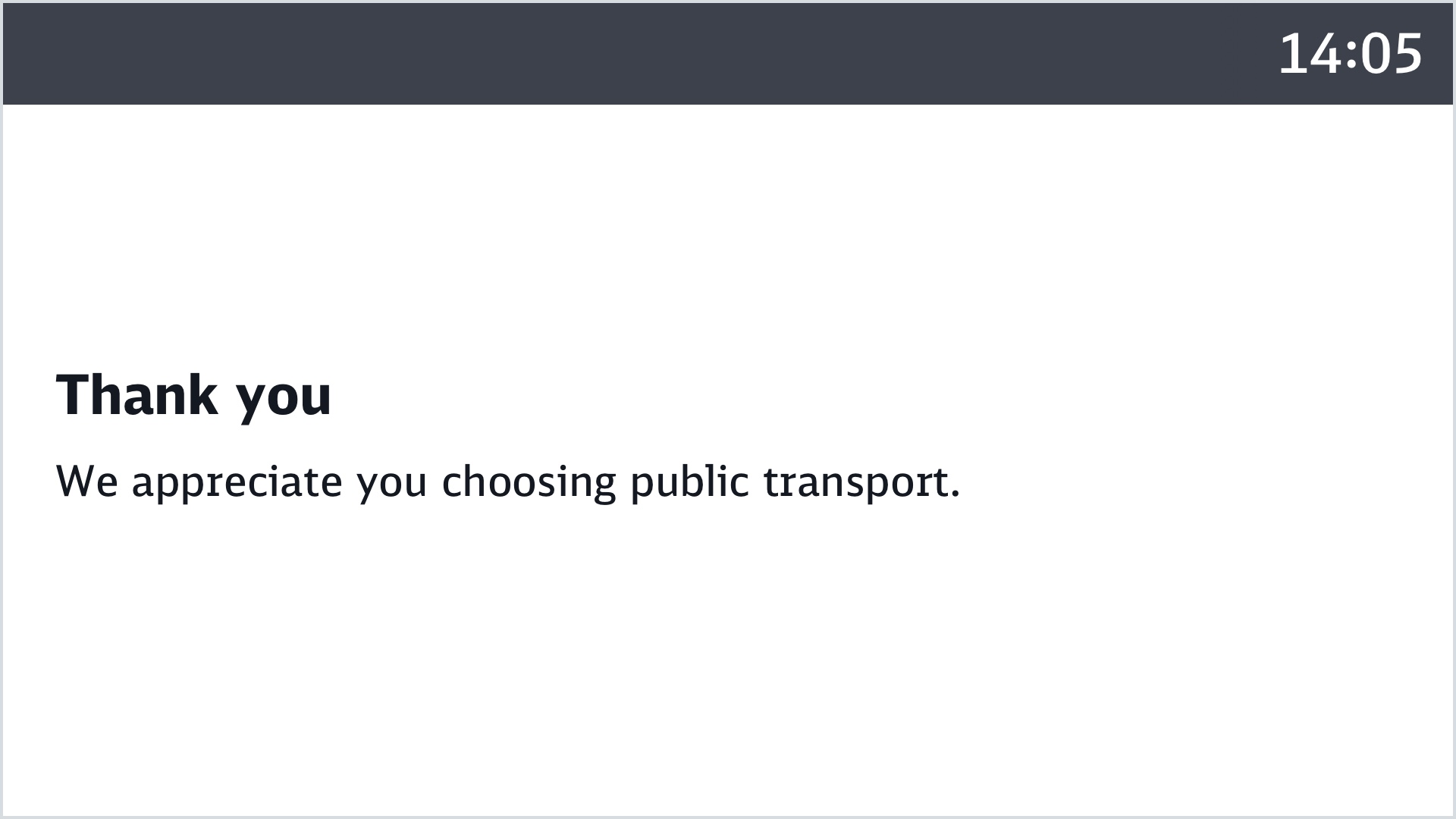 Im Endhalt angekommen bleibt die Verabschiedung bis zur Abmeldung oder Anmeldung auf eine neue Fahrt stehen. Bis auf die aktuelle Uhrzeit werden keine weiteren Zeitangaben gemacht.